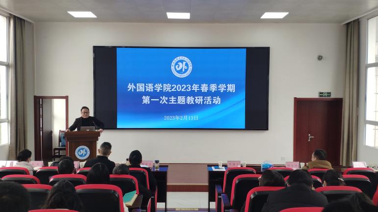 2月13日,外国语学院在学院四楼学术报告厅举行了2023年春季学期第一次教研活动,本次主题教研由副院长陈斌主持,学校宣传部常务副部长罗翔宇、体育学院院长倪东业、教务处副处长宁华宗、学院领导班子成员和外国语学院全体教师出席本次教研活动。