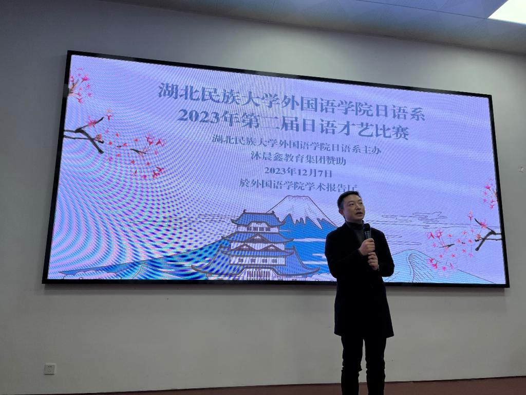 活动伊始,严森为本次活动致辞。他对日语专业办学以来取得的成绩表示肯定,他指出,举办此次才艺大赛将有助于日语专业学生提高日语口语技能、语言表达能力、实践动手能力,是日语专业学生展现风采的平台。活动要坚持以赛促学、以学促用、以用促行。