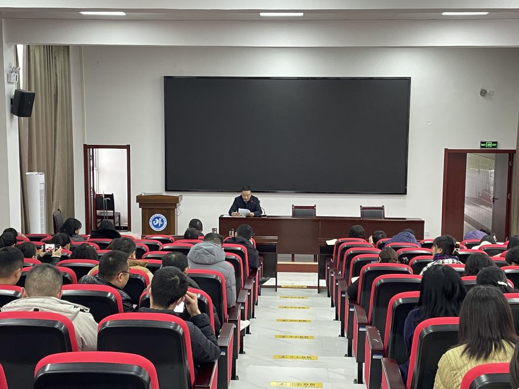 时间:2023-12-15 编辑:谭 点击:为了深入学习贯彻落实习近平新时代中国特色社会主义思想,扎实做好警示教育,进一步加强我院工作作风及师德师风建设。12月14日,我院在学院学术报告厅召开全体教职工政治理论学习大会,专题学习师德师风教育(第四期)相关文件精神。会议由学院党总支书记严森主持,全体教职工参会。