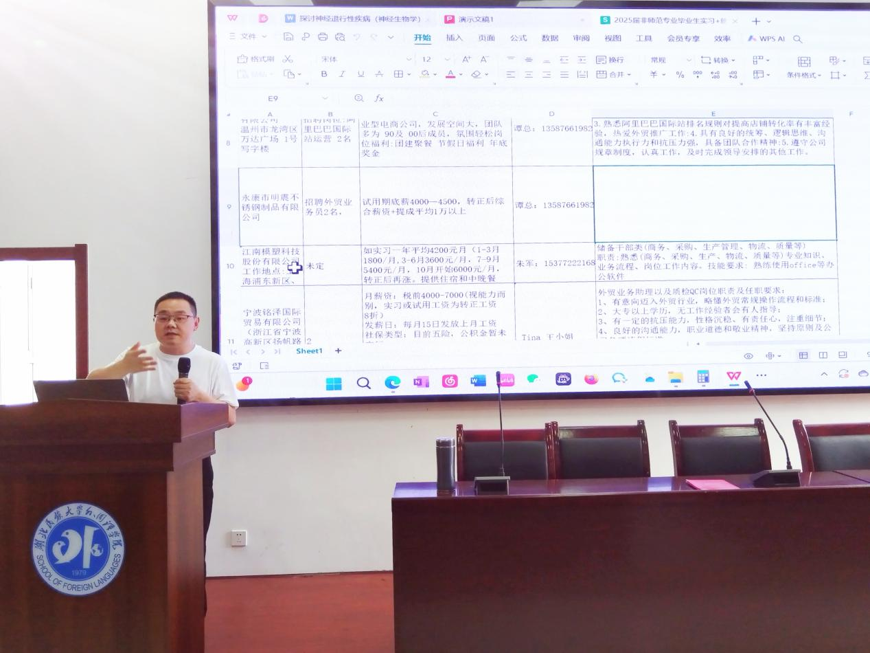 紧接着,郝良燕就日语专业学生的实习实训情况做了介绍,指出目前的实习岗位有高中日语教师、日本海外实习及外贸岗,但还不够多。学院还将积极拓展日语实习基地渠道。