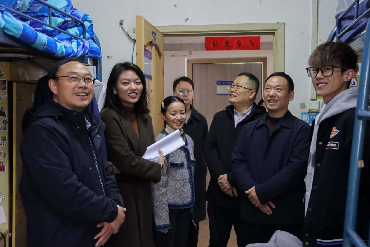 田景福走进学生寝室,亲切地与学生互动交流,细心查看公寓设施的使用情况。从宿舍布置到房间的采光通风,从水电设施的运作情形到生活用品的配备状况,逐一细致问询。