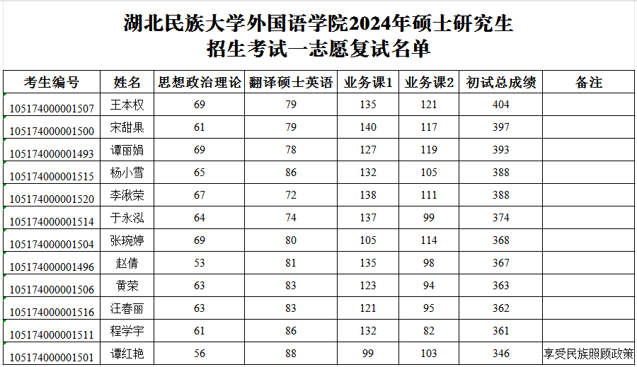 jinnian金年会外国语学院2024年硕士研究生招生考试一志愿复试名单