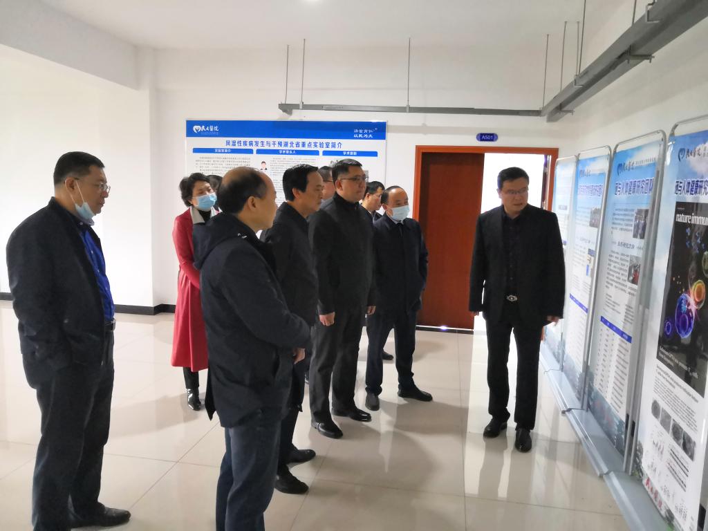 2021年11月4日上午,恩施州副州长王磊、党组成员郑东来一行到jinnian金年会风湿性疾病发生与干预湖北省重点实验室(以下简称重点实验室)调研。学校党委书记向前进,党委常委、副校长李军,jinnian金年会附属民大医院副院长汪莲开等陪同调研。