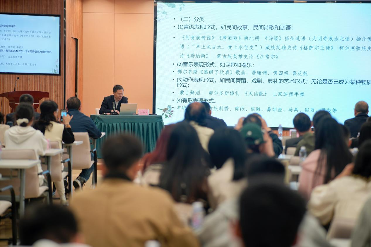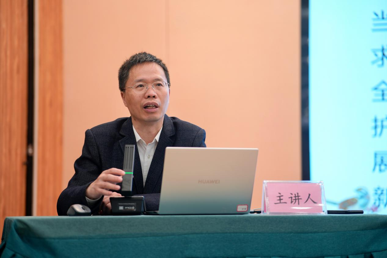 胡开忠教授立足进一步推动中华优秀传统文化传承发展的民间文艺版权保护与促进试点工作问题开展精彩讲解。胡开忠教授首先就民间文学艺术作品的概念特点进行梳理,从《诗经》、土家族摆手舞等经典作品出发,总结了民间文学艺术作品的四种不同类型,并对民间文学艺术作品的衍生作品进行介绍;其次强调了民间文艺作品版权保护与创新发展的重要性和必要性,指出民间文艺作品版权保护是增强文化自信、弘扬传统文化的现实需求,是社会主义法治建设的内在要求。胡开忠教授还通过“乌苏里船歌案”“安顺地戏案”等一系列典型案例对民间文学艺术作品法律实践中存在的权利主体、精神权利保护、财产权利纠纷问题进行深入分析,指出民间文艺延伸作品的利用问题是其中的焦点问题。最后胡开忠教授详细介绍了民间文艺作品版权创新发展的具体实践,提出建设以行政部门为主导,各社会力量协同的民间文艺调研普查,实施民间文艺版权自愿登记制度,探索民间文艺版权交易平台,推进国际交流与传播打造民间文艺中国品牌等一系列新举措。