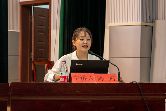 报告会上,陈娟首先分享了承载她年少梦想的民大回忆,并结合自身扎根基层的工作经历讲述“基层装扮了她的平凡青春,完成了从学校到社会、从城市到乡镇、从掌上明珠到乡干部的角色转变。”与群众一次次地真心相待和热情回应,让她真正开始懂得了如何守护基层,九年的基层工作中她为群众提供法律援助,帮助解决农民工工资发放、老人养老、重点人员就业就学等民生实事400余件,累计管理社区矫正和安置帮教对象1200余人,陈娟尽其所能地与群众交流、交心、交朋友,了解群众需求,维护他们的合法权益,成为了他们最信赖的人。陈娟表示,她看到了今天学弟学妹们的勇敢和担当,她为同是民大人而倍感骄傲,并勉励同学们生逢盛世要自信自强、不负盛世,在中华民族伟大复兴的赛道上奉献自己的青春力量,向母校交出合格的成长答卷。