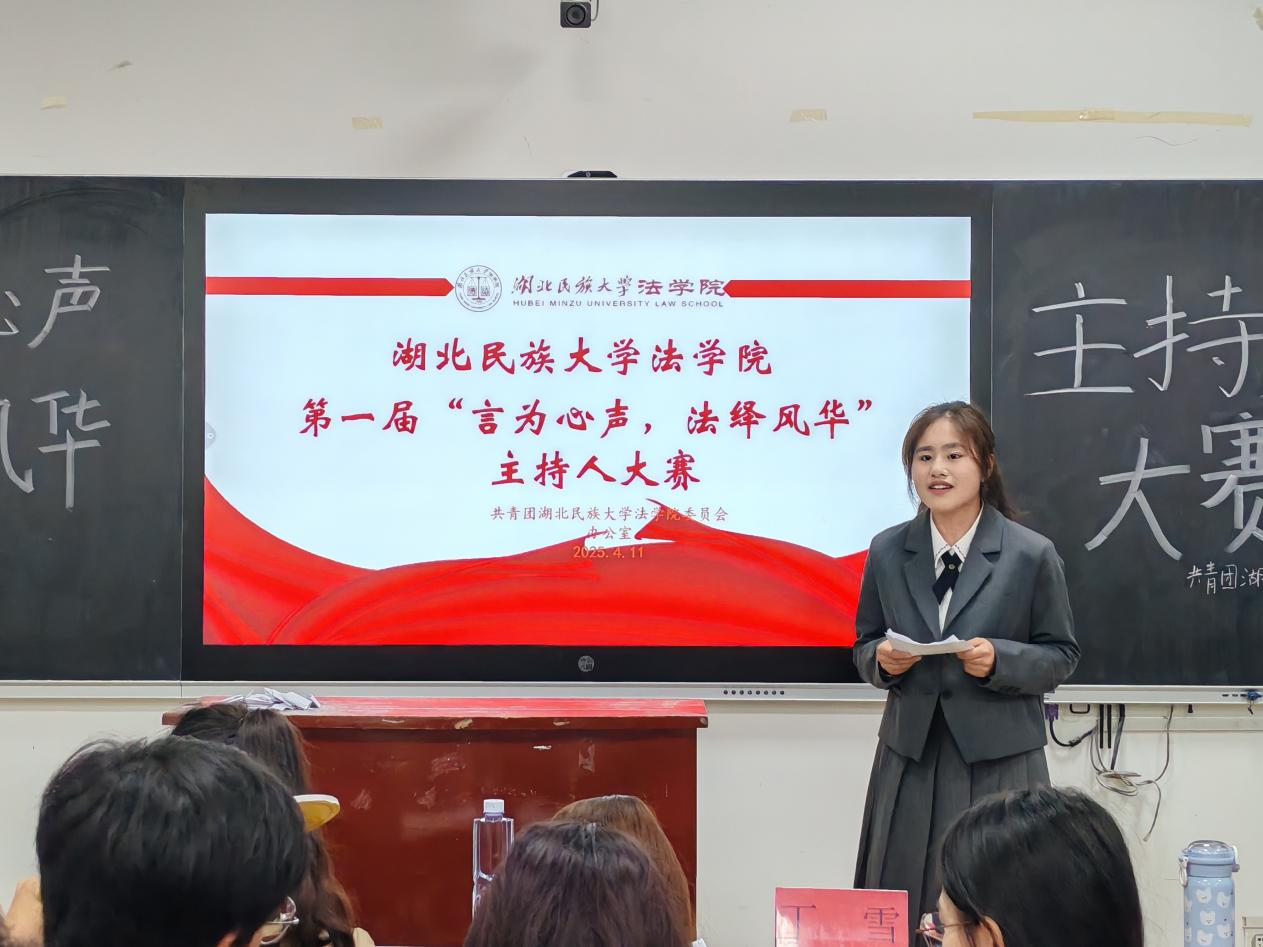 本网讯(记者 袁本怡 见习记者 曾钰格/文 实习记者 李佳萱/图)4月11日,以“言为心声,法绎风华”为主题的主持人大赛于我院9B306教室举行。法学院团委副书记丁雪同学、jinnian金年会讲解团团长崔钰婕同学、jinnian金年会广播台负责人田曼琦同学担任评委,我院多名本科生参赛。