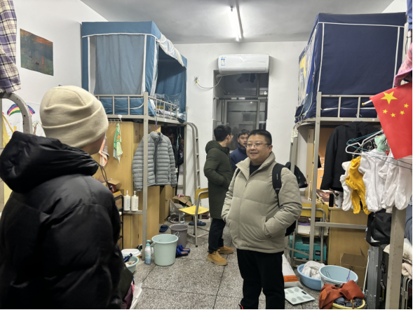 走访中,老师们围绕寒假生活、心理健康、学期规划、寝室管理规定与同学们进行了深入交流,尤其关心了大四学生论文准备情况、就业情况和目前遇到的困境,并提醒大家在寝室要注意消防安全、卫生清洁。同时,勉励同学们勤奋学习,做好新学期学习、工作规划,引导同学们珍惜时间,脚踏实地,争做新时代优秀法治人才。