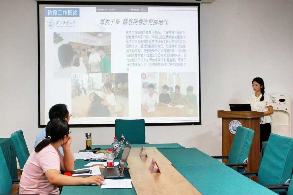 本网讯(记者 袁本怡/文 谭正法/图 )9月14日,我院于德智楼9B314会议室召开2024年大学生志愿者暑期文化科技卫生“三下乡”社会实践项目结项答辩会。法学院实践创新中心主任柳海松、院团总支书记谢学婧出席并担任本次答辩评委。本次大会分为团体项目和个人项目两部分展开,每位答辩人围绕项目背景、活动目标、实施计划、预期成果等方面对项目进行总结。针对选手们的答辩,两位老师从项目的实施程度、PPT的制作以及项目的成果转化等方面提出反馈意见和建议。