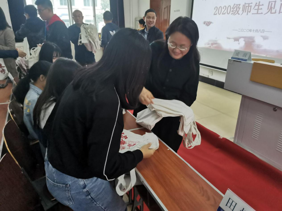 本网讯(记者 杜玉泽 罗丹/文 廖欢/图)10月8日,我院于德智楼9B401教室举行2020级师生见面会,我院党总支书记田恒俊、院长汪燕、党总支副书记许宗友、副院长李文革以及法学院全体教师,2020级全体学生参加,2020级辅导员成润担任主持人。