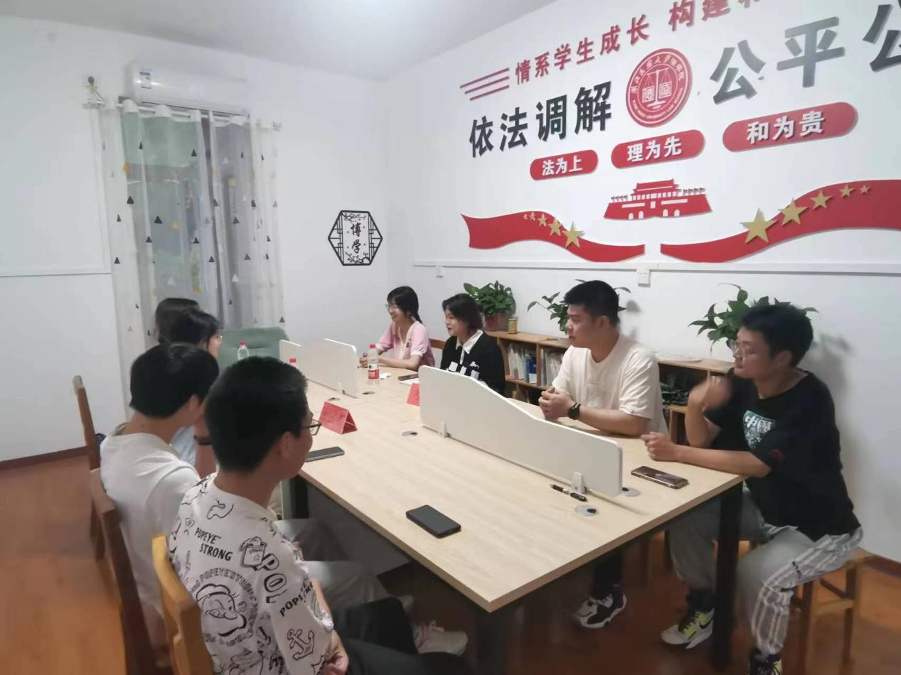 活动伊始,陈龙介绍了本届法学院参加公务员考试的总体情况,分享了自己备考的心路历程,重点传授了面试环节需要注意的几个方面。一是熟悉面试题型,有针对性展开复习。二是注意考场礼仪,穿着正装,面带微笑,把握分寸,不卑不亢。三是加强训练,考前多模拟,作答时注意审题、注意回答的完整性。随后同学们结合个人实际提出了针对性疑惑,在陈龙同学耐心解答后信心倍增、干劲十足,现场交流讨论的气氛十分热烈。