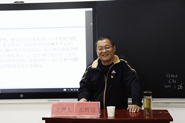 邓辉煌教授向在座同学生动地讲述“八七会议”以后恩施地区革命活动的发展历程,从攻打宣恩城、发动巴东武装起义到建立革命武装根据地,科学分析了恩施革命根据地发展的基本特征,准确把握历史不同时期的深刻变化,深刻阐述了湘鄂西革命根据地的重要历史地位。他鼓励同学们要不断地向历史学习,汲取历史智慧,总结历史经验和历史规律,以回答和解决在新的历史条件下党和国家发展面临的重大理论和现实问题。(见习编辑 谭晓莹)
