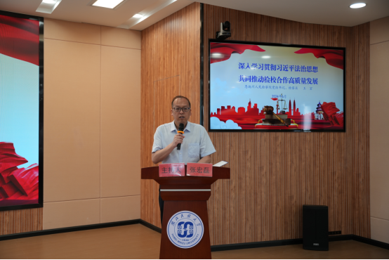 6月5日,“深入学习贯彻习近平法治思想、共同推动检校合作高质量发展”专题讲座在金年会德智楼远程教学观摩室举行,恩施州人民检察院党组书记、检察长王宏应邀主讲。学校党委常委、纪委书记、监察专员张宏磊主持讲座。