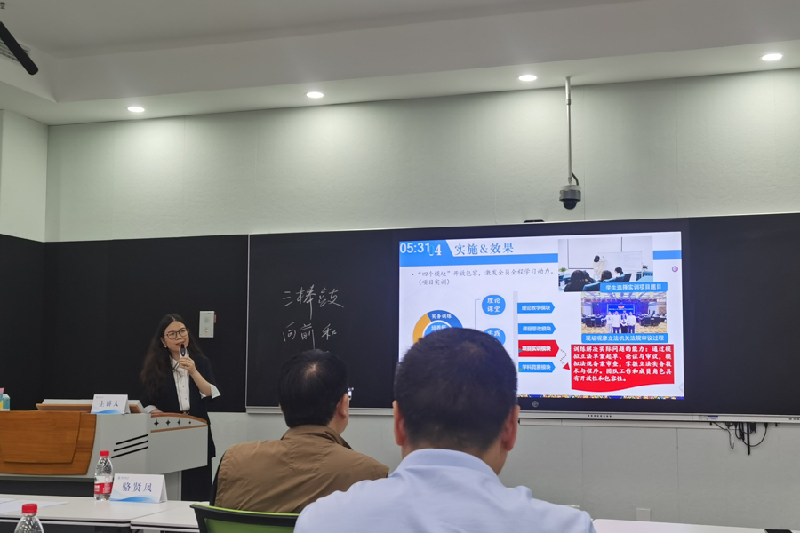 近年来,学校积极举办教学创新大赛,助力“四新”建设,促进教师教学“提质创新”,深入推动教育教学改革,全面推进课程建设,践行教学创新,锻造金师,提升人才培养质量。冉艳辉认为,参加教学创新大赛,对于教师来说,就是对平时课程建设理念和实践的总结和提炼。“虽然是第一次参加教学比赛,但我的功夫都下在了平时。这次参加比赛的创新实践报告、课堂教学视频,就是我的学生和我日常课程教学状态的真实呈现。”在谈及《立法理论与实务》这门参赛课程时,冉艳辉分享了她的做法,从三年前开课之时,她结合自己多年的立法实务经验与理论研究,注重将线上与线下课程相结合、理论与实践相结合,依托恩施州立法研究与人才培养基地这个平台进行教学改革,在立法理论学习的基础上增加模拟立法实训课程。以问题为导向,以学生为中心,融合理论教学、课程思政、项目实训和学科竞赛,注重考核全程化、评价多元化,实现了该课程教学模式的全面创新。