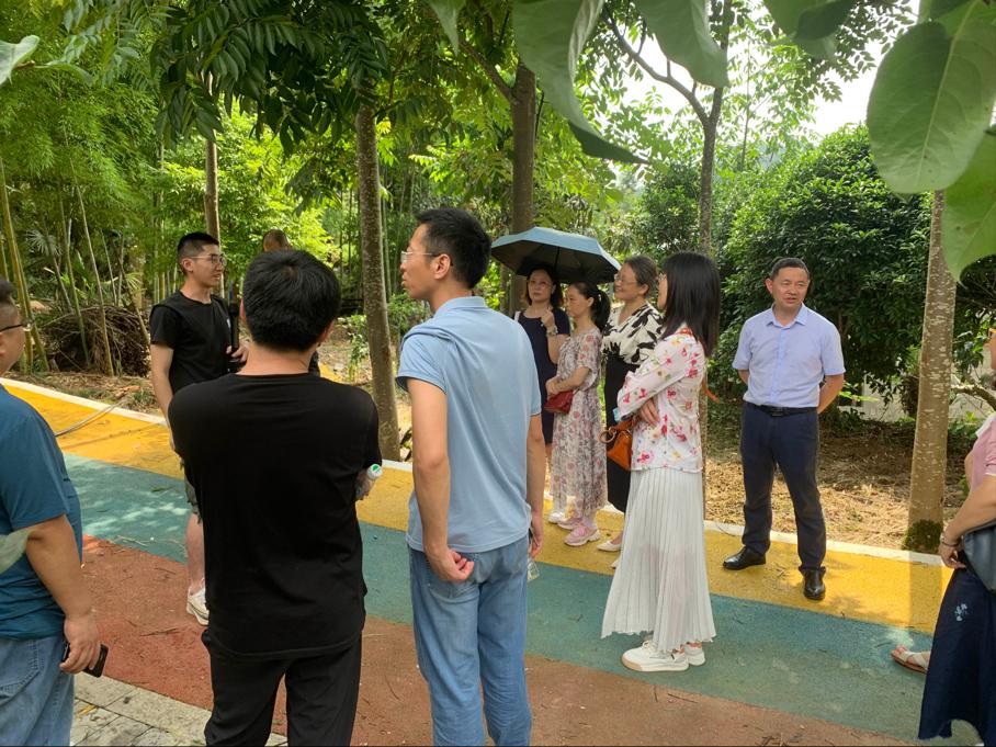 最后,在黄坪村村干部的带领下,法学院党员教师及教职工漫步黄坪村基层党员干部实践基地彩虹步道,聆听、感悟关于黄金梨的种植故事。