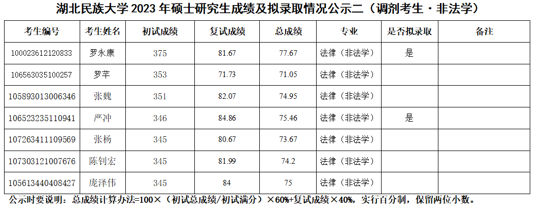 jinnian金年会2023年硕士研究生成绩及拟录取情况公示二(调剂考生·非法学)