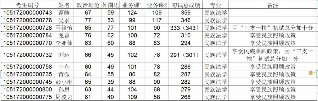 jinnian金年会法学院2022年硕士研究生招生考试一志愿复试名单
