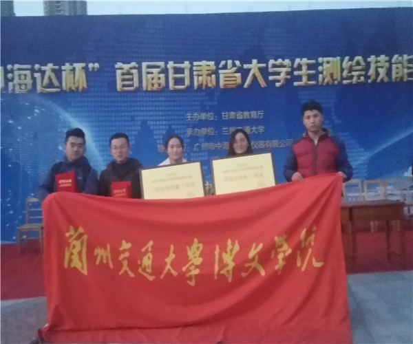 2018年11月10日甘肃省首届测绘技能大赛在兰州交通大学和谐园举行,本次大赛由甘肃省教育厅主办、兰州交通大学承办,我院由工程管理系李瑾、赵琴香两位指导老师和16级测绘工程专业杨敏、包田臻、王康宏、张俊娥四名学生组成的代表队参加比赛,在各个代表队激烈的角逐过程中,我院代表队最终获得三等导线测量三等奖和综合三等奖的好成绩。