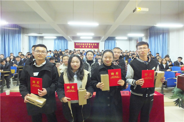 随后,我系学生管理副主任肖东老师宣读第八届主席团及部长名单,由第八届团学会主席团代表张兴旺做就职演讲。演讲中提到,作为学生干部要有强烈的责任心,以身作则,团结互助,服务师生。同时对新一届团学会班子提出了较高的工作要求,号召大家为创造更好的成绩做出努力。