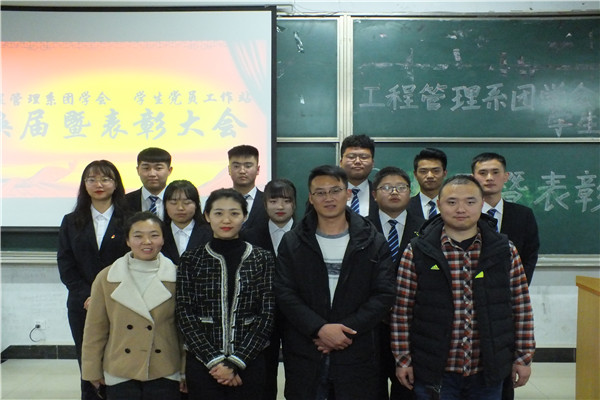 2019年10月25日下午,兰州交通大学博文学院工程管理系党团学换届暨表彰大会在南校区教学楼东T2教室举行。参加本次大会的有工程管理系教学管理副主任苟世霞,学生管理副主任肖东,教工党支部书记王媛,辅导员曹泷,以及我系学生代表。