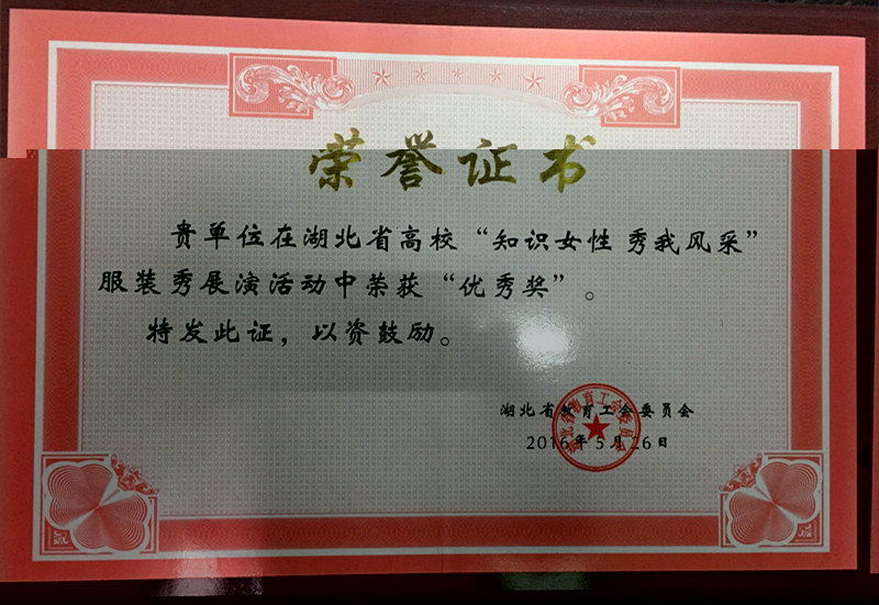 2016年5月26日,金年会代表队参加湖北省高校“知识女性 秀我风采”服装秀展演荣获“优秀奖”。