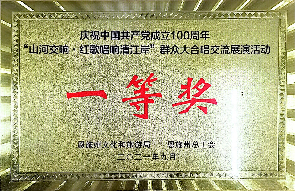 金年会参加恩施州总工会恩施州文旅局主办“山河交响·红歌唱响清江岸”群众大合唱交流展演活动获一等奖