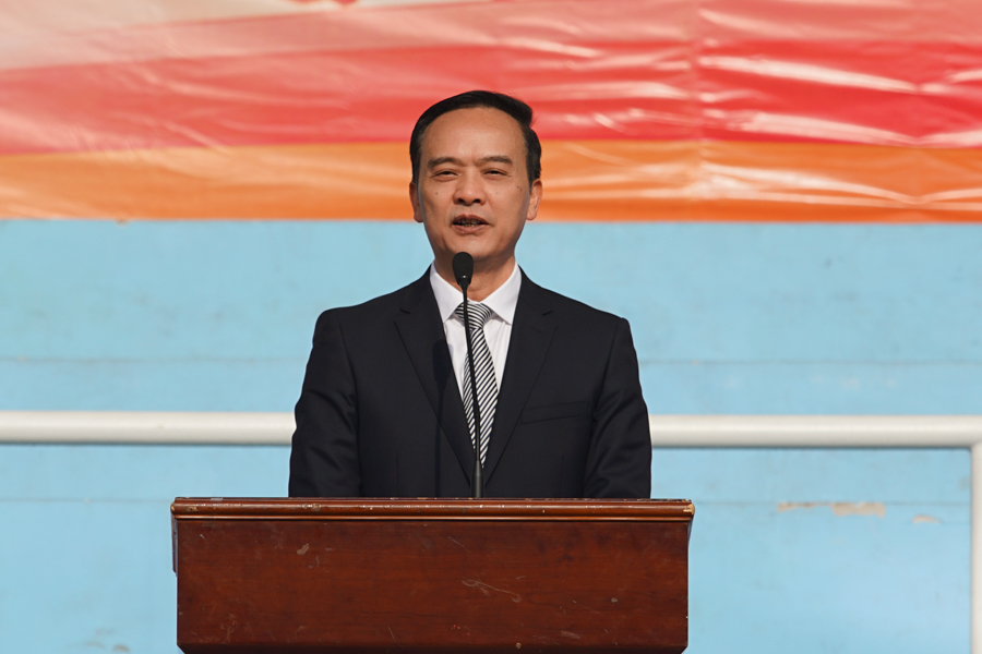 邓磊致开幕辞。他指出,运动会是学校“全方位育人”的重要载体,是学校师生“育体”与学校“育人”有机结合的具体表现;运动会是一场体育竞技盛会,也是一堂挑战自我、勇攀高峰、实现梦想的成长课程;运动会是广大师生展示自我风采的舞台,也促进相互融合交流的平台。他希望全体运动员秉承“锻炼身体、增强体魄”的宗旨,追求“团结、友谊、进步”的目标,发扬“更快、更高、更强、更团结”的奥林匹克精神,团结协作、不断超越、创造优异成绩,使本届运动会成为一次增进友谊、团结鼓劲、互相学习、开拓前进的体育盛会,在运动中展现民大风采,并预祝全体运动员取得优异的成绩。