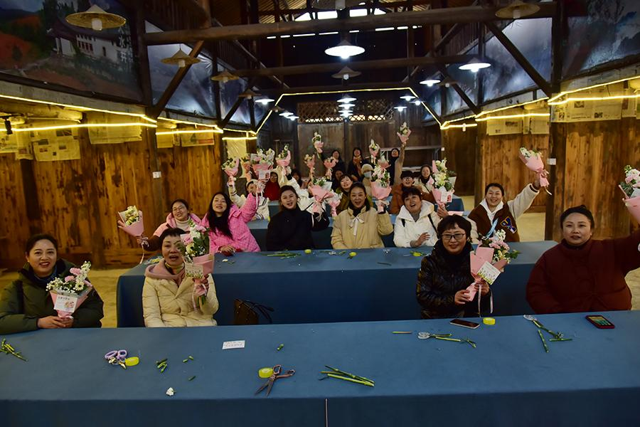 跟党奋进新征程,巾帼建功新时代。3月8日,在第114个“三八”国际劳动妇女节到来之际,学校在利川60公社召开2021—2023年度“三八”红旗手表彰大会,开展扎染技艺培训、花艺培训、运动趣味游戏等研学活动。