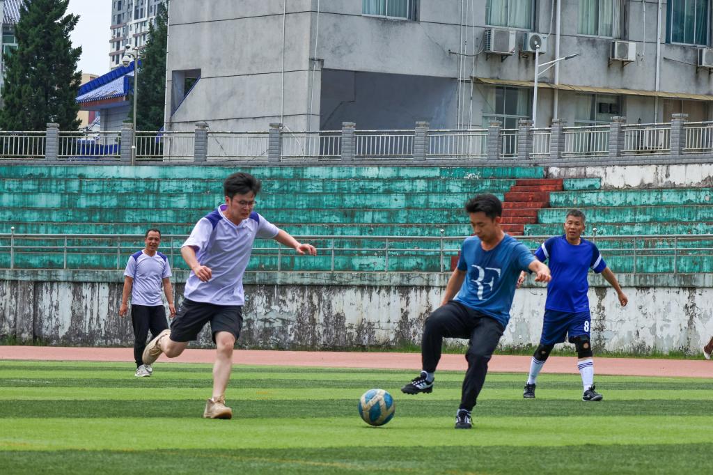 三尺讲台之外,教职工们化身足球健将绿茵场上展风采。