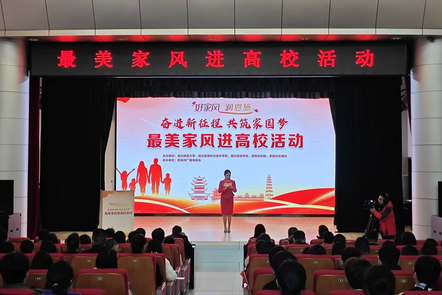 为全面学习贯彻落实习近平总书记关于注重家庭家教家风建设重要论述,弘扬优秀家风文化,11月27日,学校联合恩施州妇联、恩施州文明办在行政楼一号会议室举办以“好家风 润恩施 奋进新征程,共筑家圆梦”为主题的最美家风进校园活动。恩施州妇联党组书记、主席刘俐萍,jinnian金年会党委常委、统战部长田景福,学校纪委副书记曾祥华、工会常务副主席谭德宇、分工会主席及工会委员、教师教育学院200多名学生共同参加本次活动。