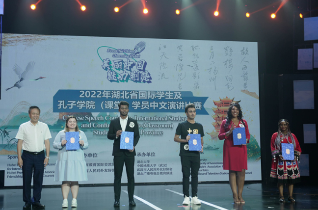 据悉,本次比赛旨在深入学习贯彻习近平总书记给北京大学的留学生们回信精神,推动新时代湖北来华留学事业高质量发展,鼓励国际学生讲好中国故事、传播好中国声音、弘扬中国精神,以湖北学习期间的所见所闻所感,展示真实、立体、全面的中国。省教育厅副厅长、党组成员、省委教育工委委员余学敏,省教育国际交流协会会长、湖北大学副校长蒋涛,省人民对外友好协会秘书长徐浪舟、省教育厅对外合作与交流处处长黄念平、省教育国际交流协会副会长兼秘书长卢进元等作为嘉宾出席比赛并颁奖。(审核:李元胜)