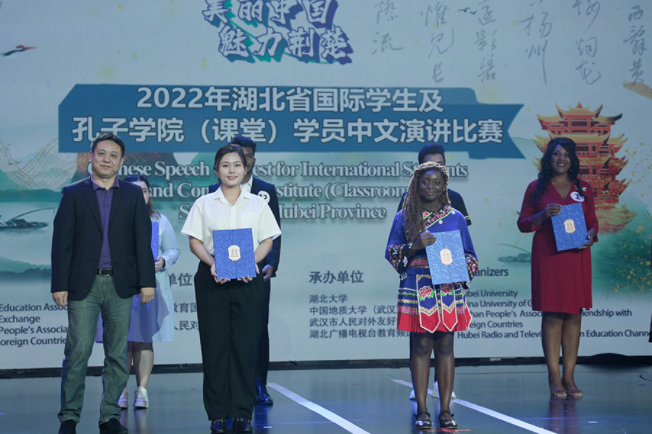 8月12日下午,由湖北省教育国际交流协会、湖北省人民对外友好协会主办的“2022年湖北省国际学生及孔子学院(课堂)学员中文演讲比赛(决赛)”在湖北广播电视台举行。金年会参赛的两名国际学生表现优异,获得三等奖、最佳才艺奖、优秀奖,国际教育学院陈春红老师获得“优秀指导教师”称号。