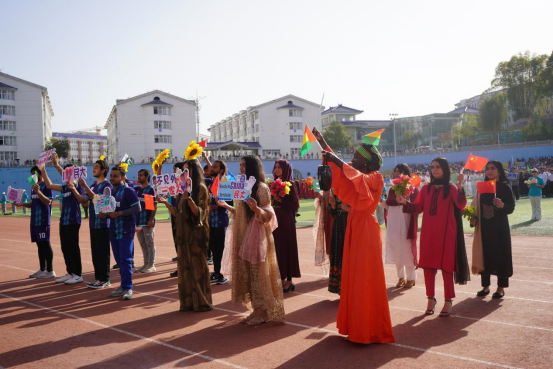 值得注意的是,在运动会的开幕式和闭幕式上,部分国际学生代表身着各自国家的传统服装,纷纷亮出各自的文化符号,成为了全场的焦点,他们自信地走在入场式队伍中,向全校师生展示着多元文化的魅力,他们用绚丽多彩的服饰和独特的文化元素,展示着不同地域的文化风采,为这场体育盛会增添了一份别样的国际风情,让观众们仿佛置身于一场国际文化交流的盛宴之中。