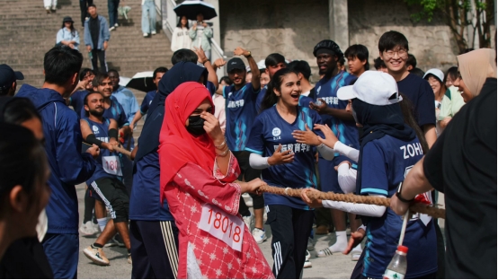 在集体项目中,留学生们积极参与拔河、足球、羽毛球、排球、乒乓球等比赛。其中,男子足球队表现尤为出色,他们在比赛中充分发挥团队协作精神,凭借默契的配合和顽强的斗志一路过关斩将,最终荣获全校第一名的优异成绩。这一成绩不仅展现了留学生们卓越的足球技艺,更彰显了他们作为团队的凝聚力和拼搏精神。在拔河比赛中,留学生们齐心协力,喊着整齐的口号,紧紧握住绳子,展现出强大的力量和坚韧的毅力。在羽毛球、排球和乒乓球赛场上,他们灵活的步伐、精准的击球和默契的配合,赢得了观众们的阵阵掌声。