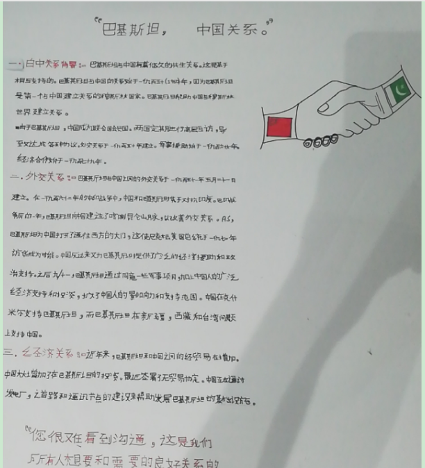 2020年6月5日—7月5日,我院举办了留学生汉字书写线上比赛。参赛学生或手抄自己喜欢的中国诗词,如《面朝大海,春暖花开》《从前慢》等,或记述自己与中国的故事,在感受中国语言文字的魅力与书写汉字的乐趣中锻炼自己的中文能力,涵养文化素养。本次比赛共评选出一等奖2名,二等奖4名,三等奖6名,对鼓励学生手写汉字、写对汉字、写好汉字,提高汉字书写能力和汉语水平有较好的推动作用,同时,也有利于丰富学生课余生活、增强学习他们的学习信心,营造良好的学习氛围。