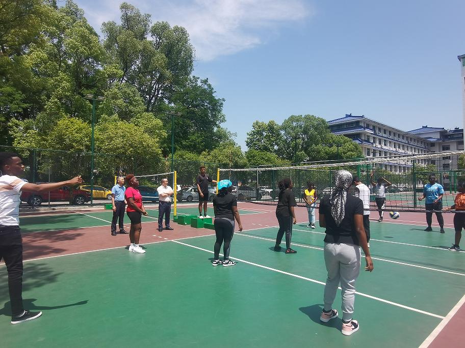 排球训练通过团体运动培养留学生团队协作、友好互助意识,有助于排解我院留学生因疫情长期未回家与繁忙课业的心理压力,做好在校学生的心理疏导安抚,进一步维护我院师生安全稳定。