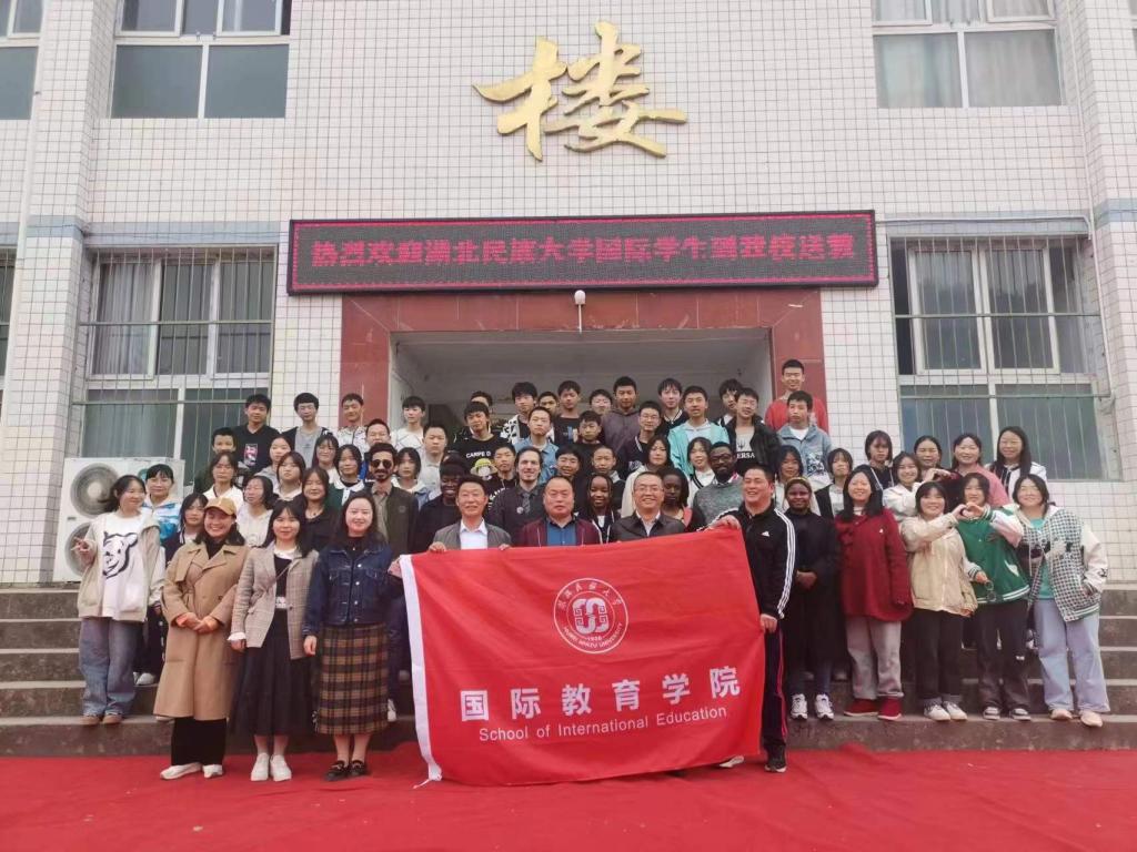 2023年427日下午,国际交流合作处党支部组织国际学生前往利川市凉雾乡马前中学开展送教下乡志愿服务活动,为山区孩子送去生动活泼的英语交流活动。