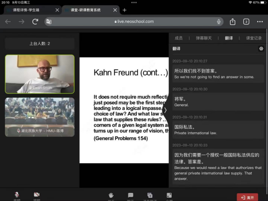 首先,由国际合作交流处罗永健处长致辞。罗处长祝贺jinnian金年会引进的第一门国际优质课程《国际私法》,在学校、学院和相关部门的高度重视和大力支持下如期开课。他指出,该项目贯彻了习近平总书记在2021年4月考察清华大学时重要讲话精神,创造性地在国际交流合作上拓展新渠道,引进优质国际教育资源,有利于促进学校国际前沿交叉学科的教育教学及科研合作高质量发展,助力“双一流”学科建设,培养创新型国际化人才。罗处长介绍了该项目课程采用的中外教师联合创新授课模式,并对参与课程的同学提出了相关纪律要求。