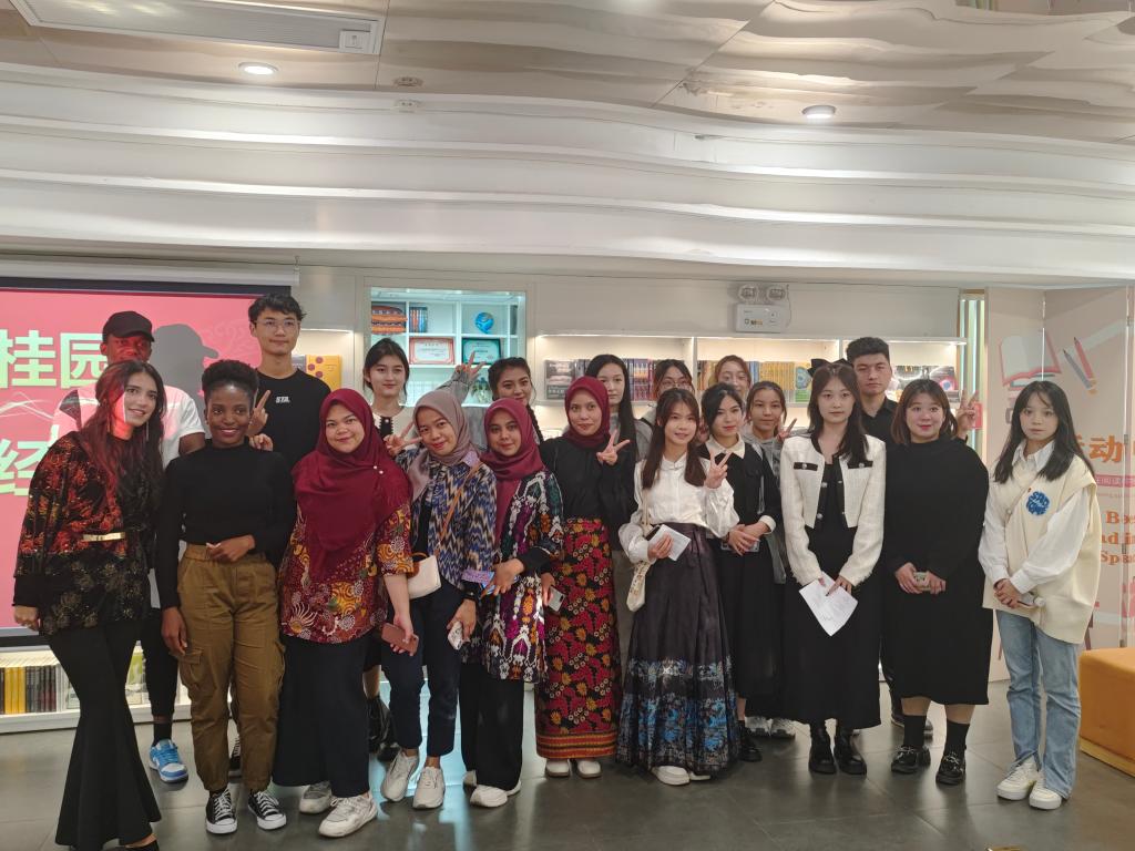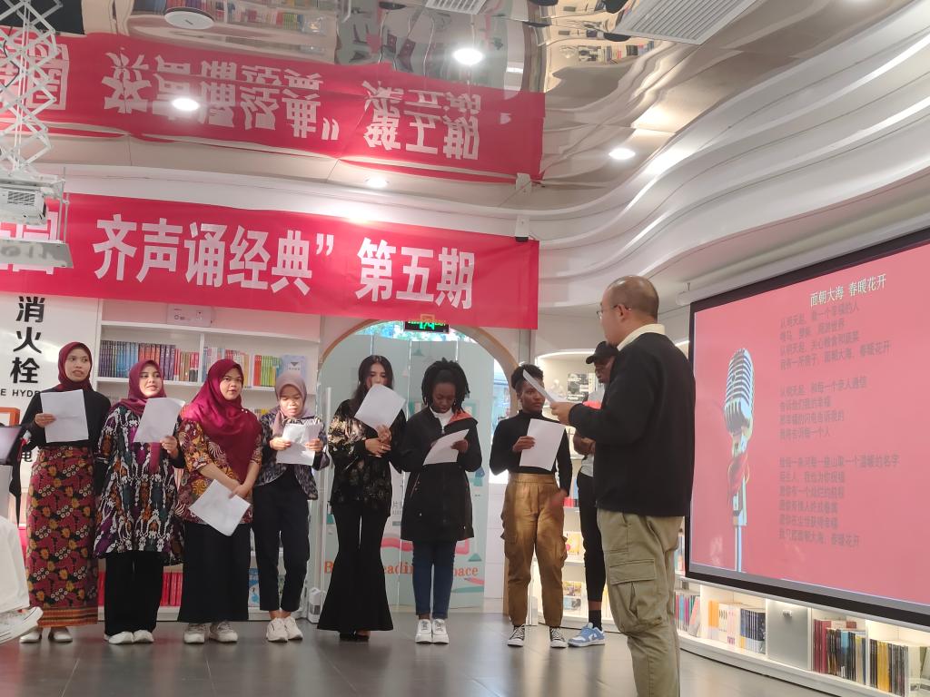 2023年10月29日下午三点半,为迎接教育部语言文字推广基地检查,金年会于倍阅书店举行了“书香满桂园,齐声诵经典”第五期活动展示。金年会留学生作为本次活动展示的第四组成员,朗诵了诗人海子的经典作品《面朝大海,春暖花开》。