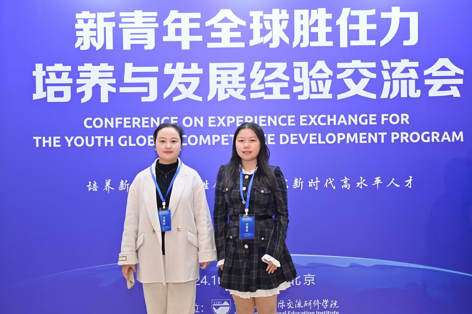 为响应国家关于“加快建设教育强国”的战略部署,2024年10月30日,由中国教育国际交流研修学院主办的“2024新青年全球胜任力培养与发展经验交流会”在北京举办,金年会国际交流合作处教师漆姣及新青年班学生代表邓琰云受邀参加。