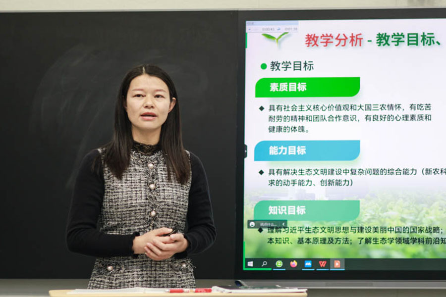 林学园艺学院姚兰教授以“面向三农,培根铸魂,提升人才质量”为主题,就《普通生态学》课程的改革进行了教学创新设计成果汇报。她详细阐释了课程教学的痛点、基于痛点所进行的教学创新与改革以及课程所取得的成果。华中农业大学王运教授、四川大学周加贝博士和金年会艾训儒教授对姚兰教授的汇报进行了点评和指导。