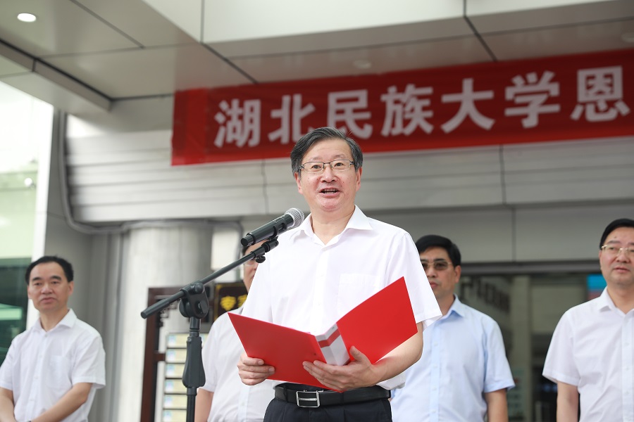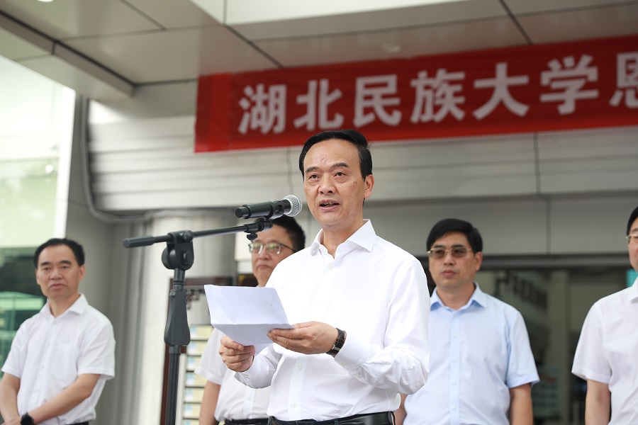 高敬佩在讲话中强调,今年是恩施州建州40周年的喜庆之年,一直以来,恩施州十分重视医学教育以及中医民族医药事业的发展,各级各部门一并科学规划、合理配置区域医学教育和医疗卫生资源,不断提高区域医疗诊治、医学教育、医学科研水平。“jinnian金年会恩施中医临床学院”在恩施州民族医院挂牌成立,是恩施州教育、卫生事业发展史上的一件大事、喜事,希望校院双方进一步解放思想、深化合作,共同促进、引领恩施州高等医学教育和医疗卫生事业的可持续健康发展,为恩施州“两山”实践创新示范区建设作出新的更大贡献。