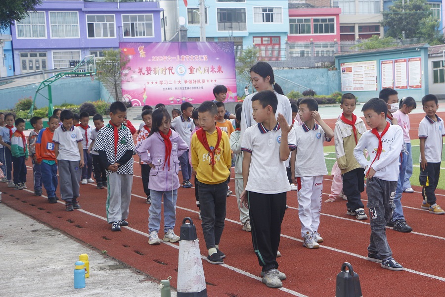 此外,志愿者们面向学校一至五年级学生教授《利川红》校园版广场舞。为使学生更好的理解、掌握舞蹈动作,志愿者在教学中,分解舞蹈动作,配合节拍讲解动作细节,逐步训练学生的协调能力。学生在听、看、练中,对《利川红》校园版广场舞有了更深了解。