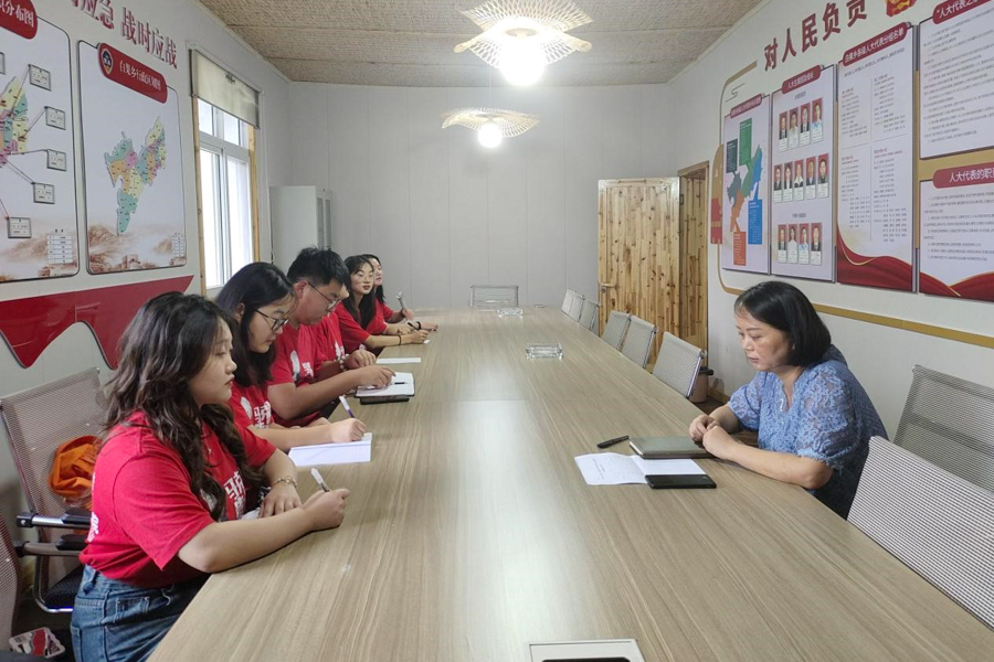 团队成员了解到白果乡的乡村产业经济,发掘当地的特色资源和潜在优势。团队成员与农民合作,并围绕农产品加工、乡村旅游开发和农村合作社建设、乡村康养民宿建设等方面进行讨论交流。同时,团队成员结合专业知识,积极提出自己想法和思考,为寻找乡村振兴的内生动力贡献青春力量,助力全面推进乡村振兴。