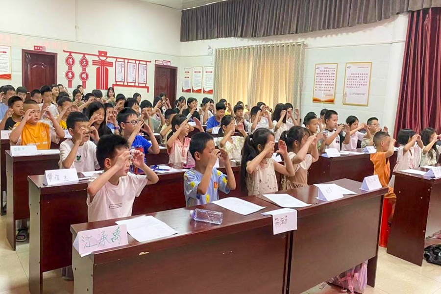 在文艺汇演暨暑期支教结课典礼上,团队成员与孩子们一起合唱歌曲《稻香》,支教老师和大班小班的同学们各展风采,共度好时光。在两周时间里,志愿者和孩子们一起上课,一起运动,建立了深刻的友谊。离别之际,大家合影留念,互道珍重,“老师,明年我还要参加你们的活动!”“姐姐,你们什么时候再来呀?我会好好学习,我以后也想成为像你们这样的人。”……稚嫩的童声里满是对未来的期望。