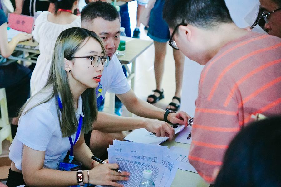 工作人员为新生分配宿舍
