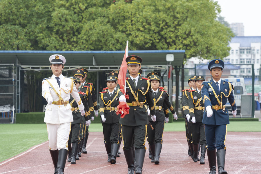 宋强在动员讲话中勉励新生:开训即开跑,希望新生迅速调整心态、进入状态,全身心投入军训中;开跑即赛跑,希望新生发扬拼搏精神,勇于超越自我、敢于挑战自我、乐于锤炼自我。军训教官代表侯力峰作表态发言。