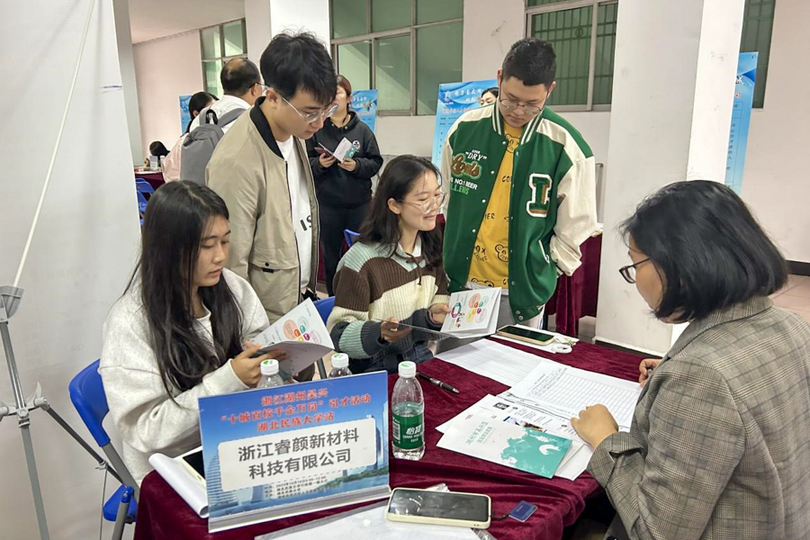 与此同时,浙江湖州吴兴区“十城百校千企万岗”引才活动(jinnian金年会站)在学校行政楼一楼大厅举行。此次吴兴区校园专招共有14家企业参展,提供62个岗位,拟招聘近200人。据统计,现场参会学生150余人,投递简历36份。