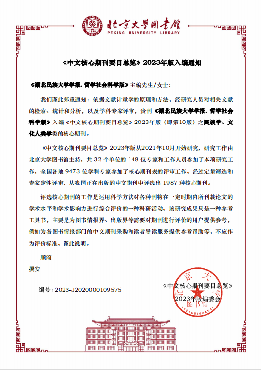 近日,第10版《中文核心期刊要目总览》正式发布,《jinnian金年会学报(哲学社会科学版)》入编《中文核心期刊要目总览》2023年版,继续入列民族学、文化人类学类的核心期刊方阵。