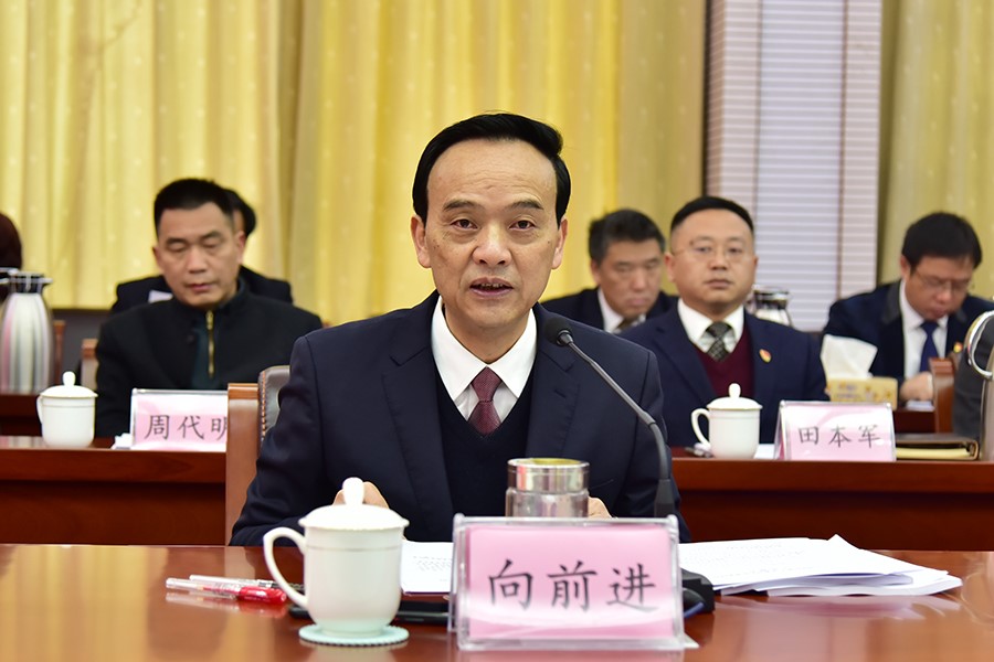 向前进在讲话中指出,要聚焦国之大者、省之要事、民大急事,置身发展大势,准确把握党建工作面临的新形势和新任务,切实以党建质量上层次保障事业发展进位次。他强调,要保持政治定力,提高政治站位,增强政治担当,持续强化政治建设;要巩固拓展主题教育成果,深入践行“思想引领、学习在先”机制,深入推进大中小学思政课一体化和“一站式”学生社区建设,深入实施马克思主义理论学科领航计划,深入贯彻习近平文化思想,深入落实意识形态工作责任制,持续强化思想建设;要着力解决党建与业务“两张皮”的问题,切实增强干部队伍的整体素质,增强基层组织的政治功能和组织功能,持续强化组织建设;要更加注重以上率下、务实俭朴和专项整治,持续强化作风建设;要深化纪律教育,从严监督执纪,厚植廉洁文化,持续强化纪律建设;要坚持制度治党、依规治党,完善全面从严治党的责任体系,发挥政治巡察的利剑作用,推进各类监督贯通协调,持续强化制度建设。
