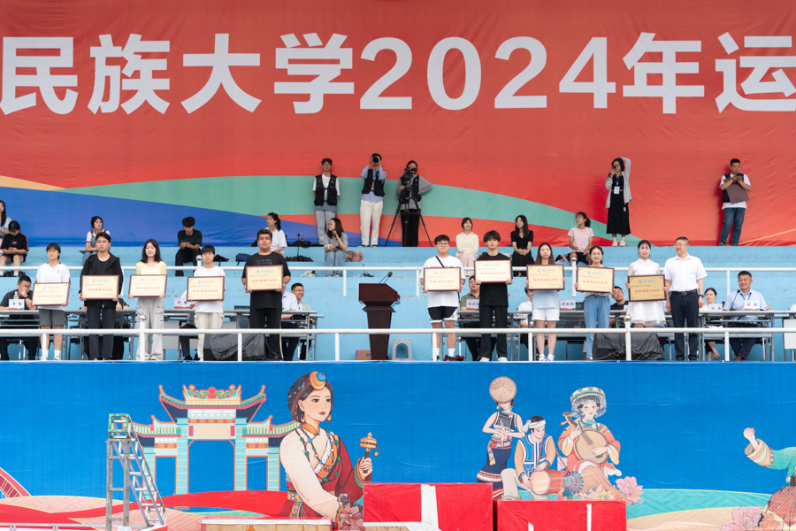 伴随着全体师生的欢呼,本届运动会完成了全部赛程,在胜利和荣耀的光辉中落下帷幕。运动员的精彩表现不仅体现了民大学子蓬勃朝气与青春活力,也彰显了广大师生奋进新征程、建功新时代的昂扬精神与奋斗意志。